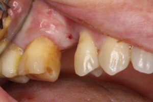 写真の方も歯茎が大きくへこんでおり 骨はだいぶ少なくなっております